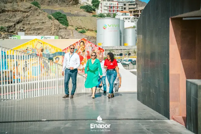 A Embaixadora estava acompanhada do Chefe de Cooperação da Delegação da UE, Dr. Cristobal Matas. Eles foram recebidos pelo Presidente do Conselho de Administração da Enapor, Eng.º Ireneu Camacho, e pelos Diretores Executivos, Dr. Eduardo Lima e Dra. Eneida Maurício, bem como pelos Diretores Delegados do Porto Grande e do Porto de Cruzeiros do Mindelo, Edmar Santos e Sónia Santos, respectivamente.
